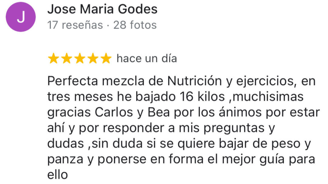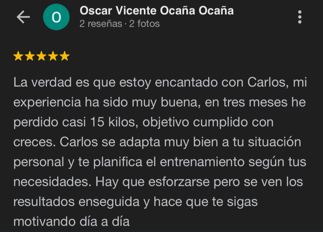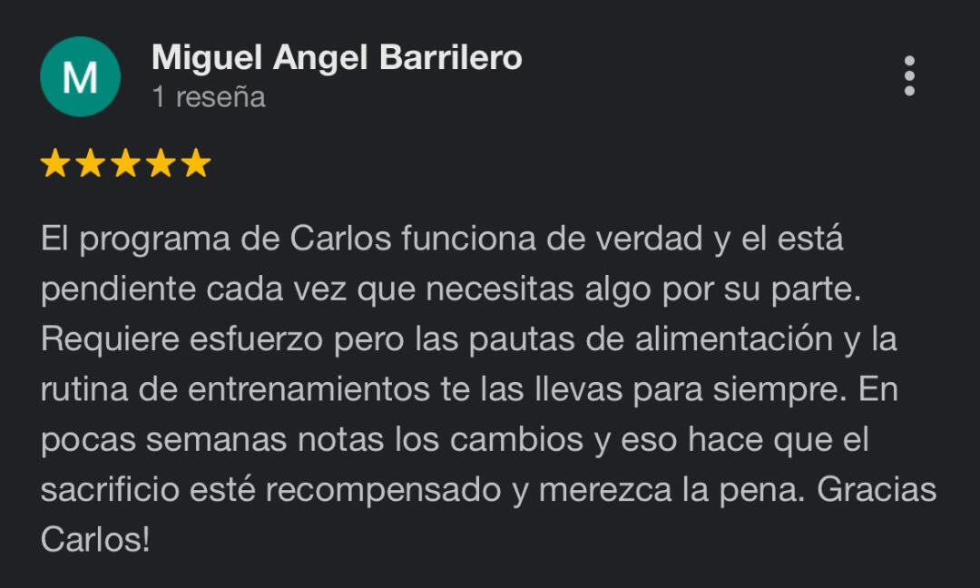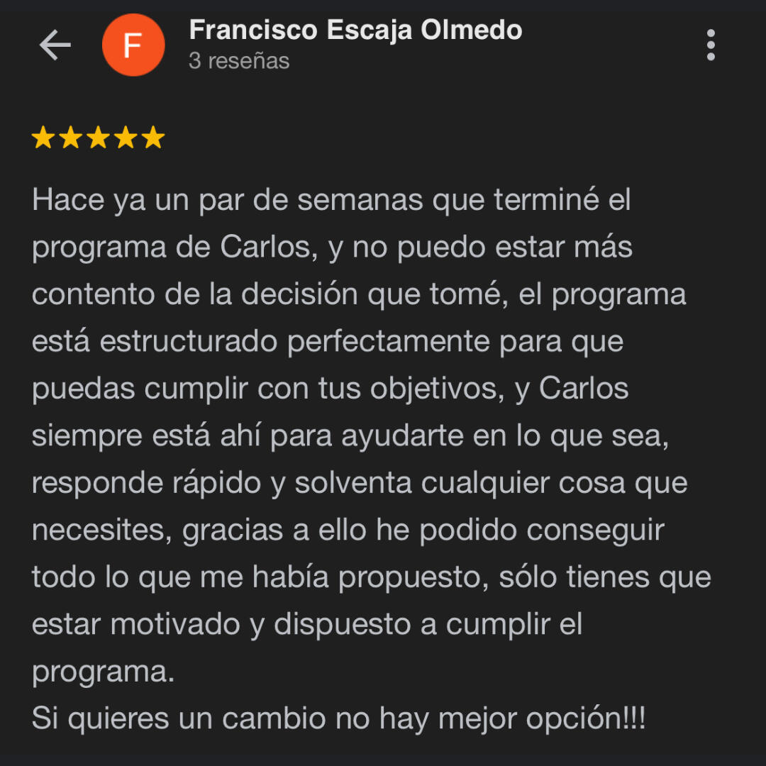 “Nunca había sido tan fácil perder la grasa que llevaba años intentando quitarme. El sistema de Carlos funciona al 200%”