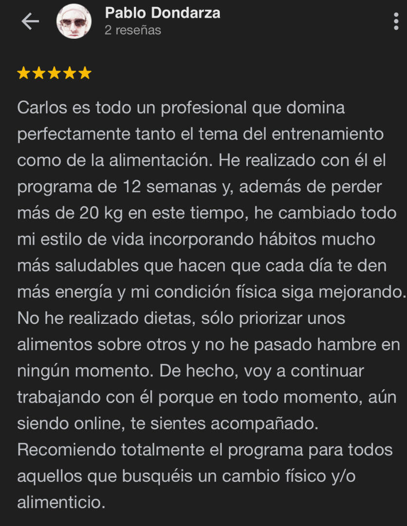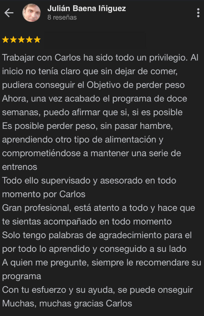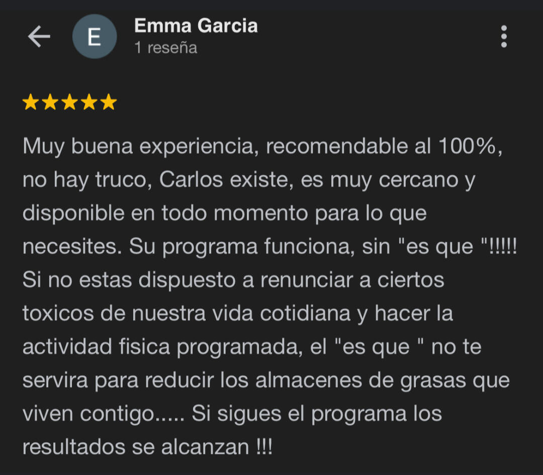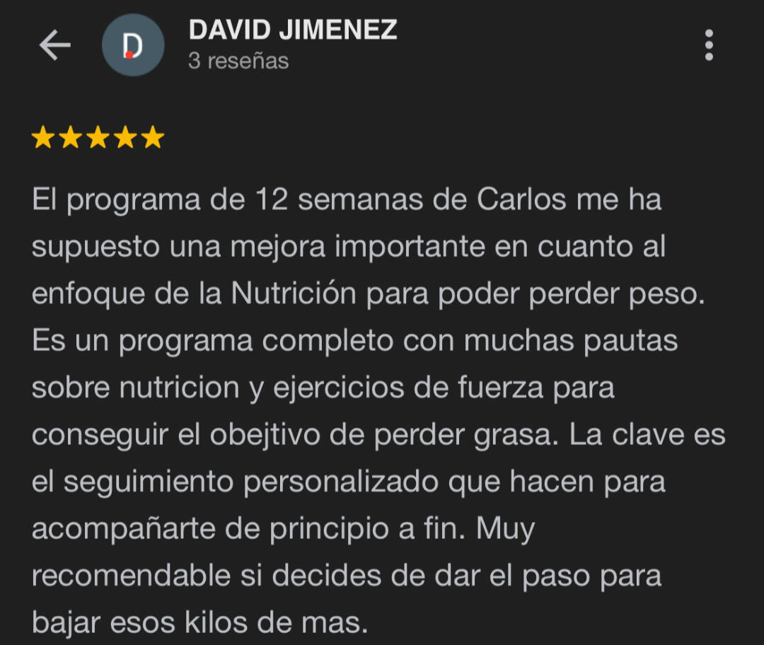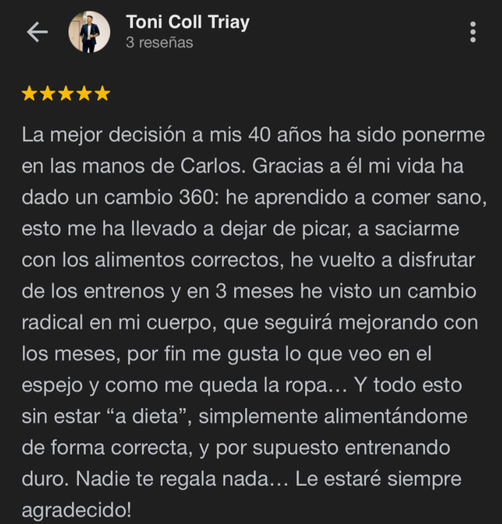 “Nunca había sido tan fácil perder la grasa que llevaba años intentando quitarme. El sistema de Carlos funciona al 200%”