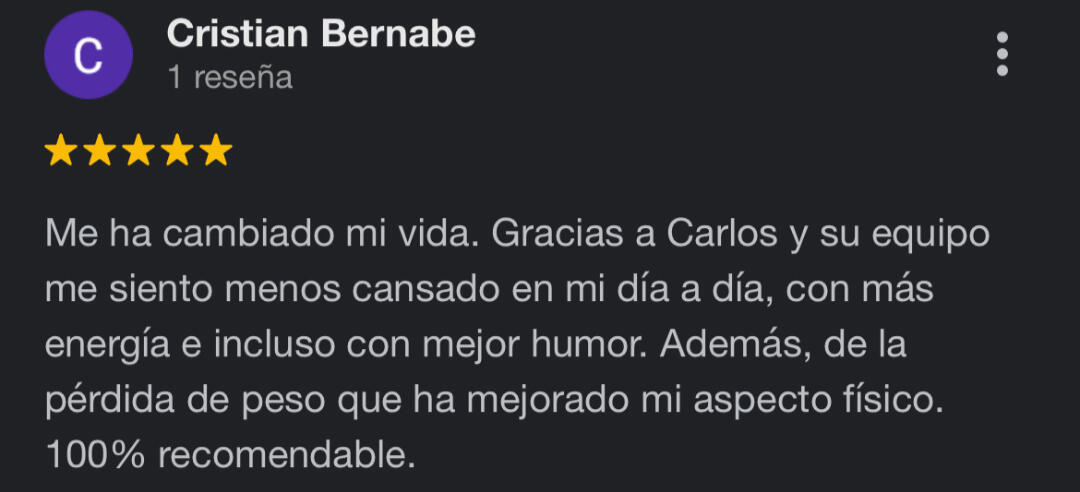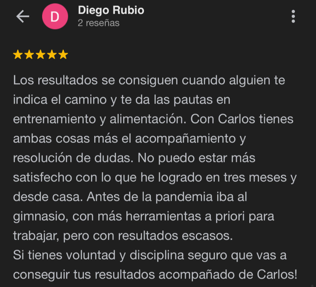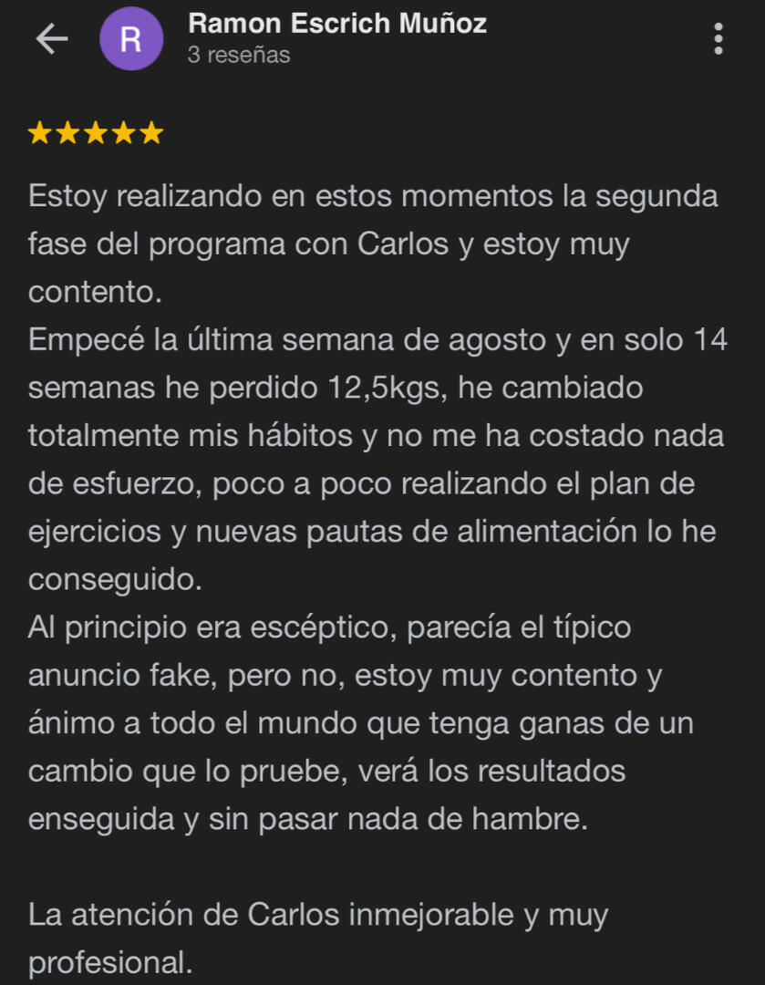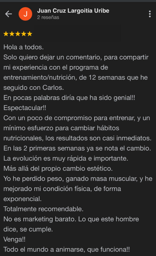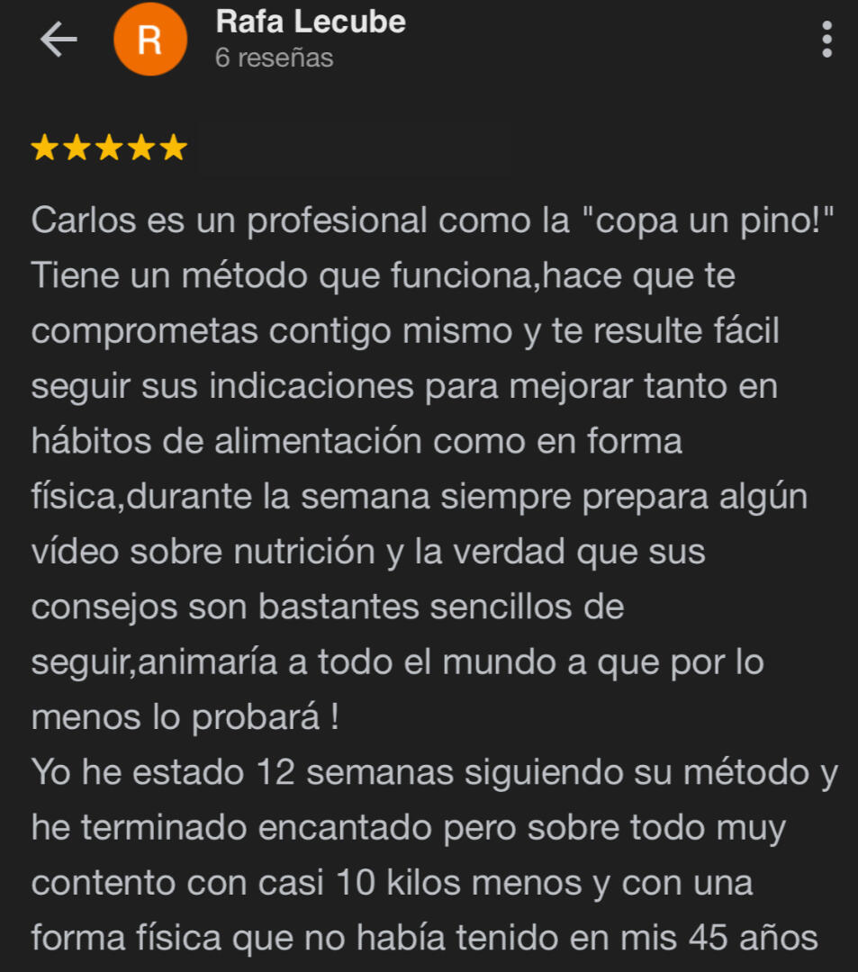 “Nunca había sido tan fácil perder la grasa que llevaba años intentando quitarme. El sistema de Carlos funciona al 200%”