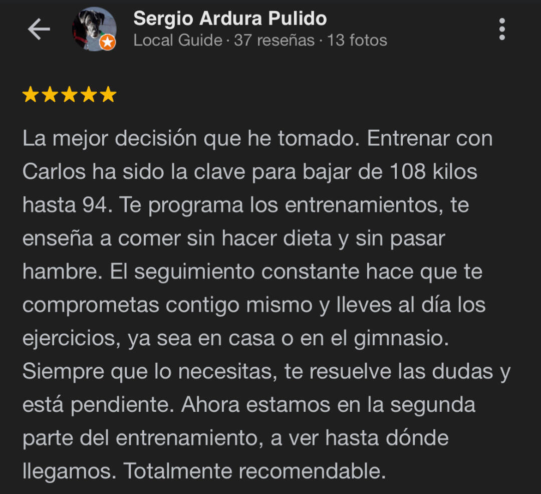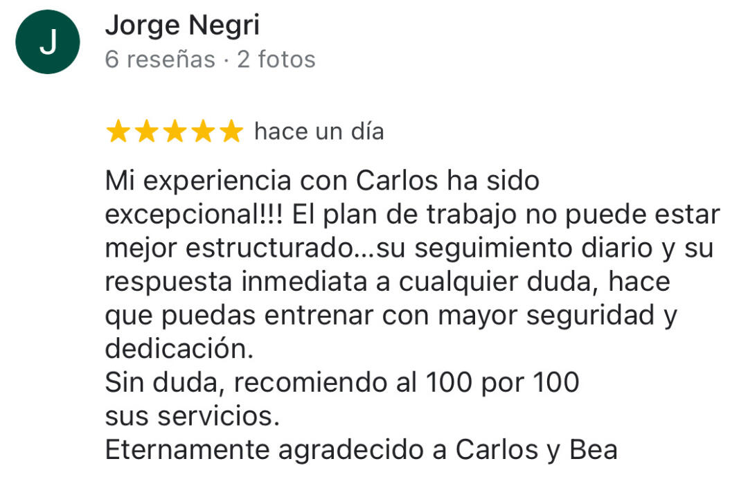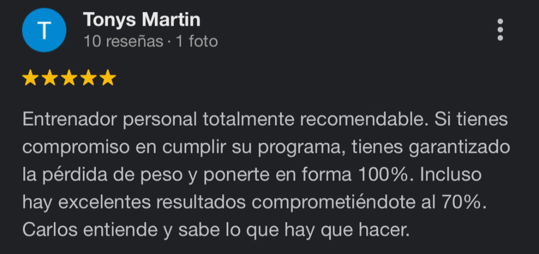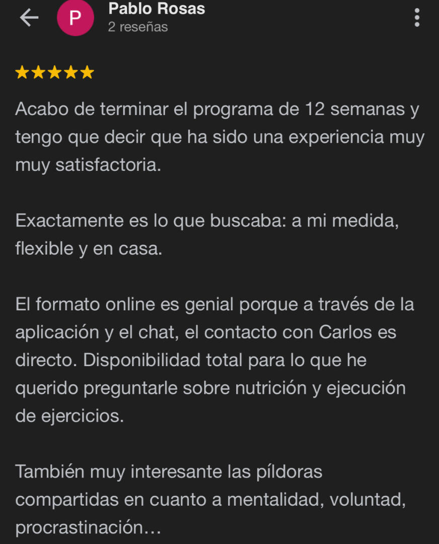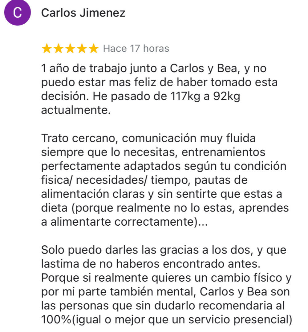 “Nunca había sido tan fácil perder la grasa que llevaba años intentando quitarme. El sistema de Carlos funciona al 200%”