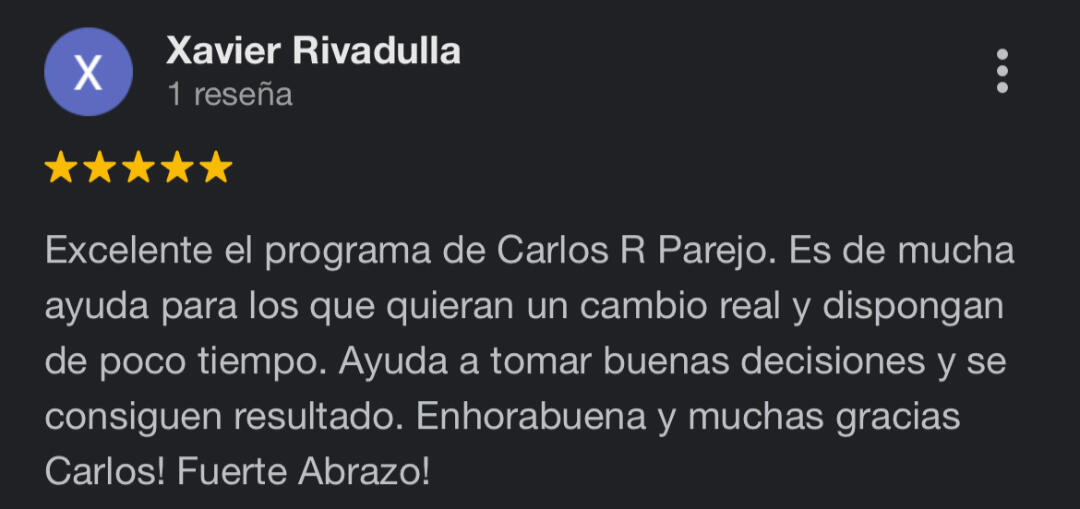Una vez pases por el proceso de selección, comenzaremos con la fase inicial y estableceremos tu plan de acción.Si tienes dudas adicionales, no dudes en contactarme a través de Instagram @carlosRparejo. Estaré encantado de responder a tus preguntas y ayudarte en todo lo posible.